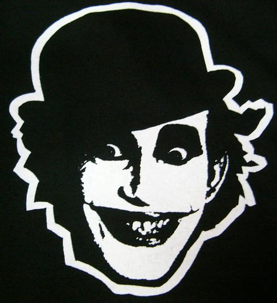 時計じかけのオレンジを彷彿とさせるピエロのような白塗りメイク、Vo.MONKEYとバンドロゴの最も代表的なデザイン!