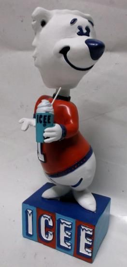 Don't miss out on the first ICEE bobbleheads. ICEE is proud to be the No. 1 frozen beverage brand worldwide and to be a part of creating the stories that are written One Sip at a Time. ICEE serves over 500 million frozen beverages each year in over 400,000 retail locations, including movie theaters, amusement parks, restaurants, mass merchandisers, convenience stores, quick service dining and more. Now you can collect these awesome ICEE Bobbleheads featuring the Classic ICEE Bear, Vintage ICEE Bear, and the iconic ICEE Cup.
