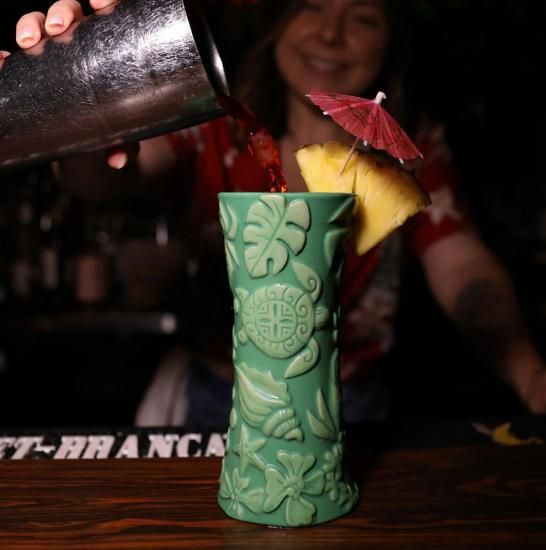 With Tiki Farm commissions historically available only on-premise at our clients’ locations, the Kaimana Beach Hotel crew was kind enough to allow us to hold back a limited availability of 250 mugs for exclusive online sales, offering Tiki Farm collectors the rare opportunity to add a coveted Tiki Farm commissioned mug to your collection, without traveling to this far-off exotic locale.