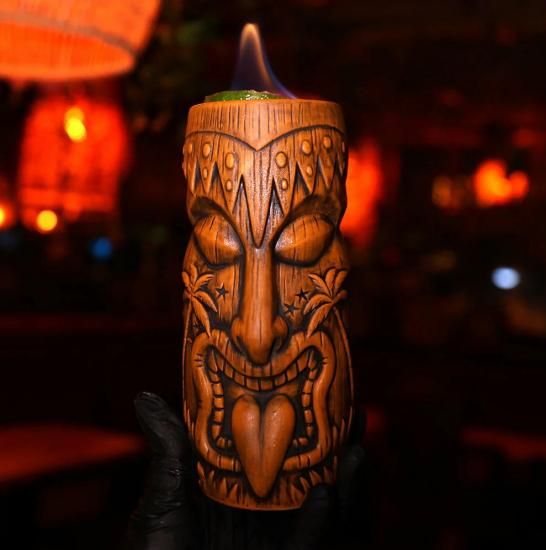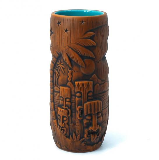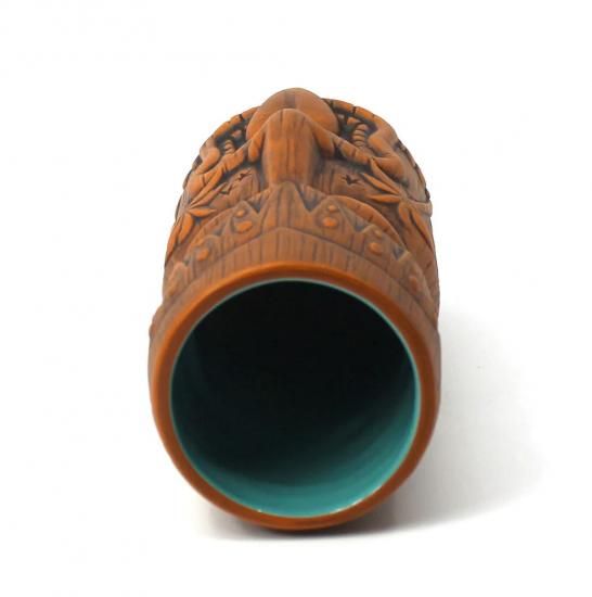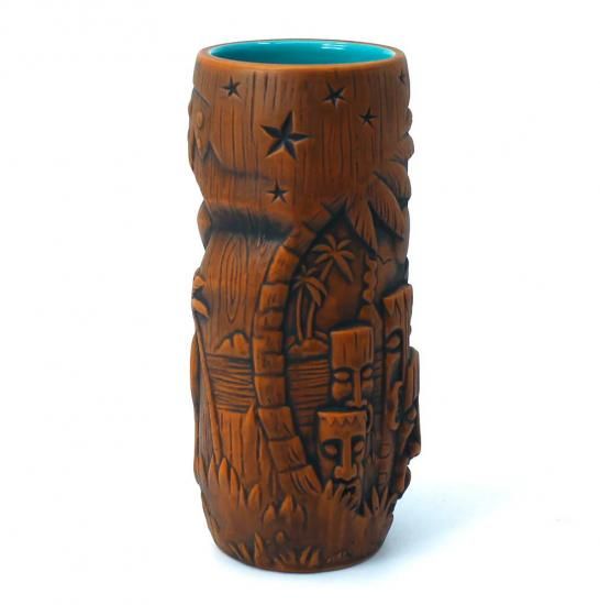 This design collaboration with Vince came out fantastic! It's a classic old-school, early years-style Tiki Farm Tiki mug! This mug could’ve easily been found at a specialized Tiki Farm retailer’s boutique-Tiki and eclectic offerings brick and mortar store back in the early 2000’s. We’re very happy to offer you a blast from the past with this wonderful new Tiki mug.