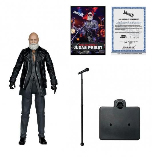 The frontman of the iconic heavy metal band, Judas Priest, is now a Music Maniacs articulated action figure! The Music Maniacs Wave 5 Judas Priest Metal Rob Halford 6-Inch Scale Action Figure features over 12 points of articulation and comes with a microphone and display stand. Also included is an art card with a numbered certificate of authenticity! This figure comes in a Music Maniacs themed window box packaging. Ages 12 and up!